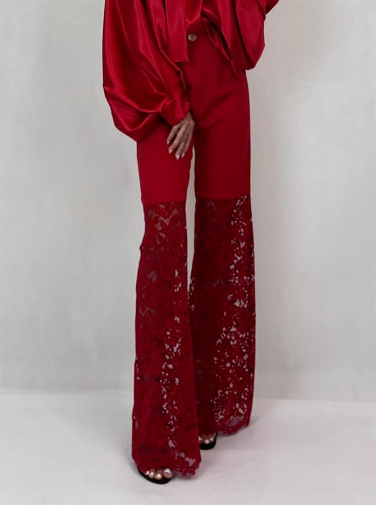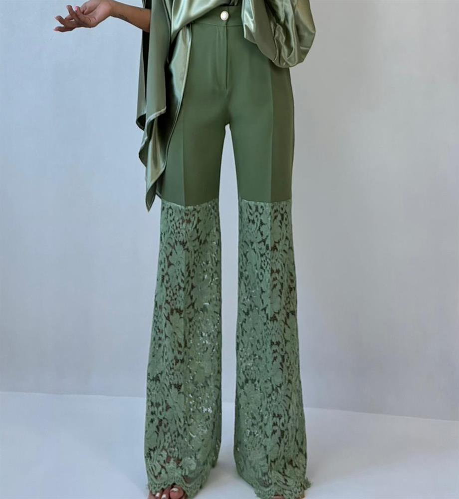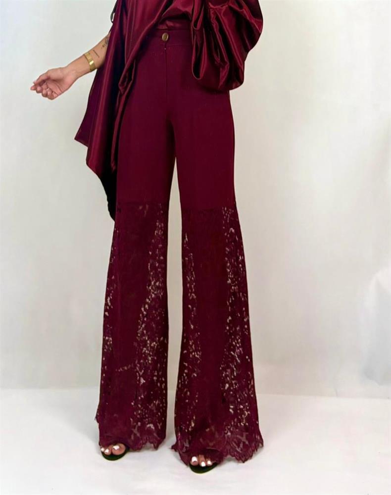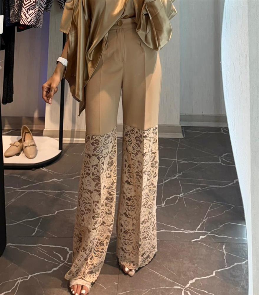شلوار ترکیبی کرپ کنزو و دانتل مخملی